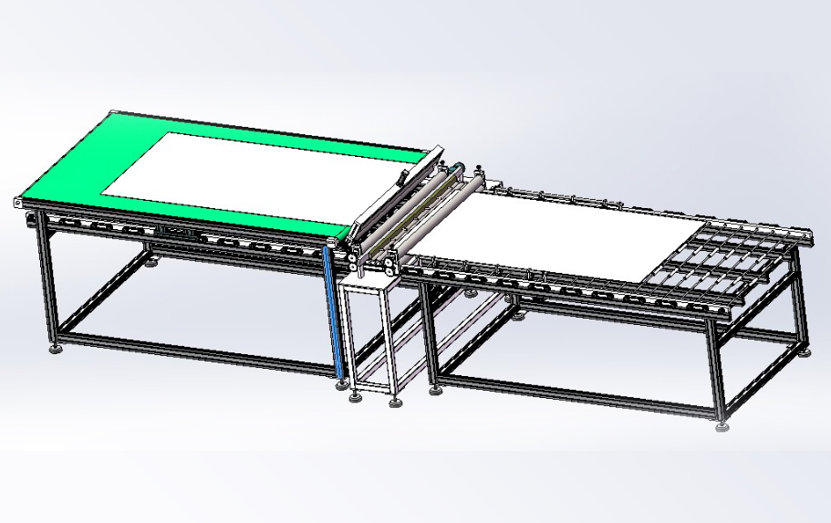 本生產(chǎn)線依據(jù)用戶需求,進(jìn)行“量身”設(shè)計,由層壓前鋪設(shè)傳輸線;通過不同機(jī)構(gòu)的傳輸、轉(zhuǎn)運(yùn)、變向、定位、旋轉(zhuǎn)/釋放實(shí)現(xiàn)組件封裝過程的流水化操作,可提高單位組件生產(chǎn)效率。
